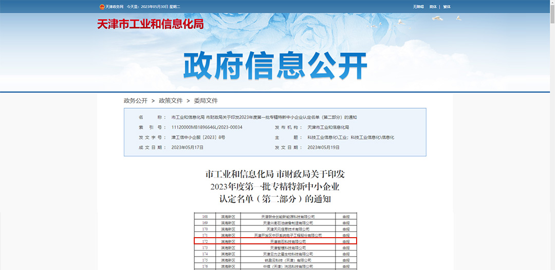 2023年度第一批天津市专精特新中小企业